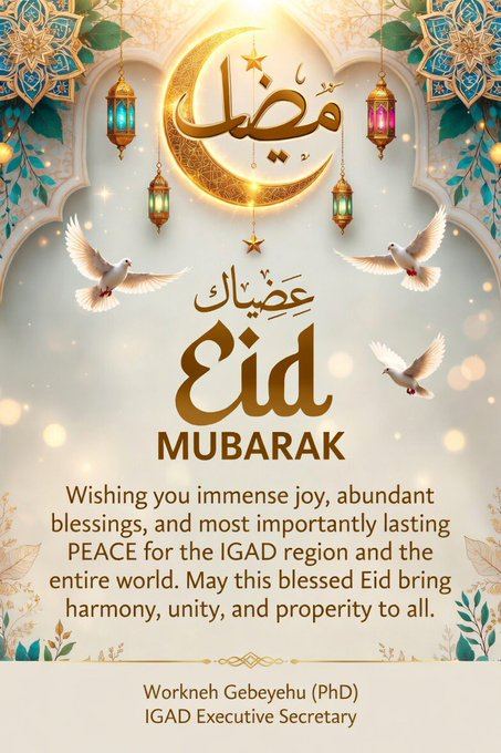 Bitootessa 11/2018(ENA)- Barreessaan olaanaa IGAD Dr. Warqinaa Gabayyoo baga ayyaana Iid Alfaxir 1447ffaan isin gahe jechuun ergaa dabarsaniiru.