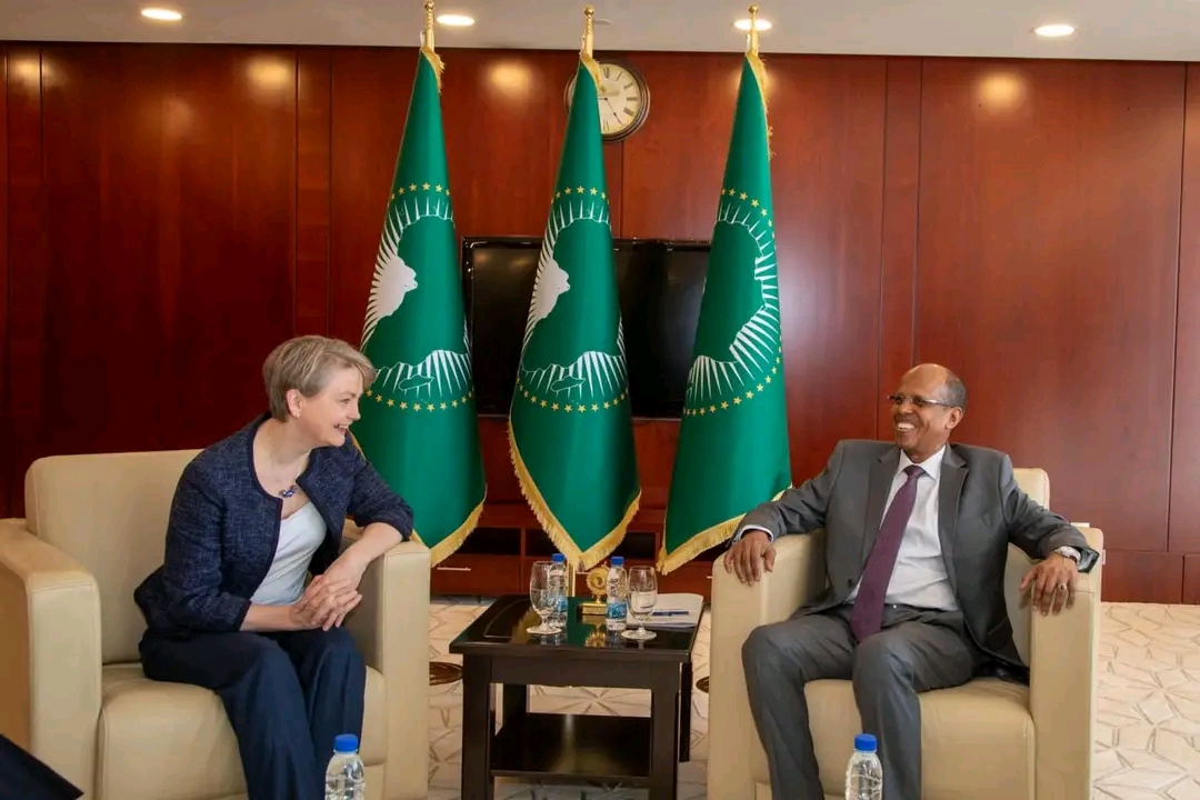 Guddoomiyaha Guddiga Midowga Afrika, Maxamuud Cali Yuusuf, ayaa wadahadallo la yeeshay Xoghayaha Arrimaha Dibadda iyo Horumarinta ee Boqortooyada Ingiriiska, Yovet Kuuber, xarunta Midowga Afrika ee Addis Ababa.