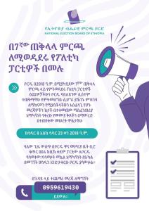 ምዝገባ ሕፁያት ኣብ መበል 7ይ ሓፈሻዊ መረፃ ዝወዳደሩ ውድባት ፖለቲካ ካብ ሎሚ መዓልቲ ጀሚሩ ክካየድ እዩ