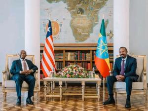 ቀዳማይ ሚኒስትር ዐቢይ ኣሕመድ (ዶ/ር) ምስ ፕሬዚዳንት ላይቤሪያ ጆሴፍ ንዩማ ቦአካይ ዘትዮም