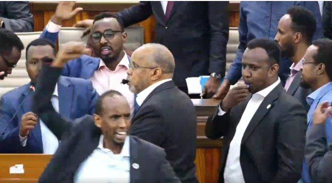ኣካይዳ መንግስቲ ሶማሊያ ዝተቓወሙ ኣባላት ፓርላማ እታ ሃገር ቁጠዐኦም ኣብ ውሽጢ ፓርላማ እንትገልፁ ተራእዩ እዩ።