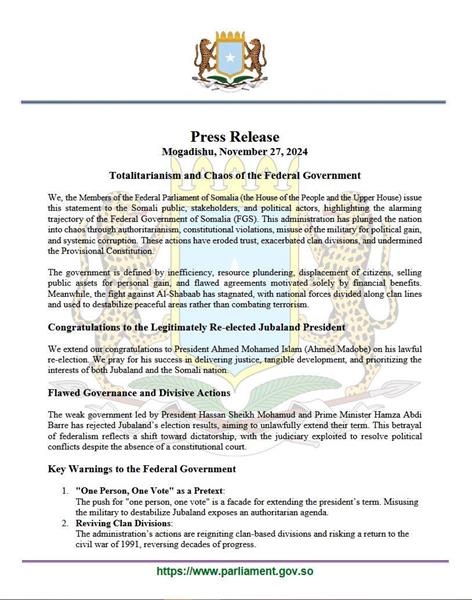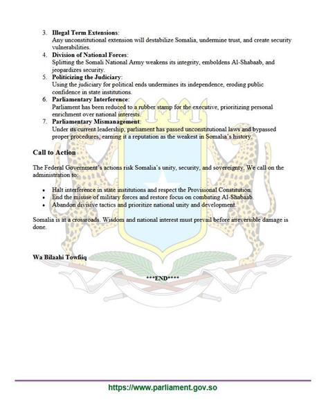 ፓርላማ ሶማሊያ ኣብ ዘውፅኦ መግለፂ፤ መንግስቲ እታ ሃገር ሰራዊት ሶማሊያ ዕጡቕ ሓይሊ ኣልሸባብ ካብ ምውጋእ ኣብ ዘርኣዊ ምክፍፋል ንክፅመድ ብምግባር ዝሓዞም ቦታታት እውን ንከየመሓዳድር ገይሩ እዩ ኢሉ።