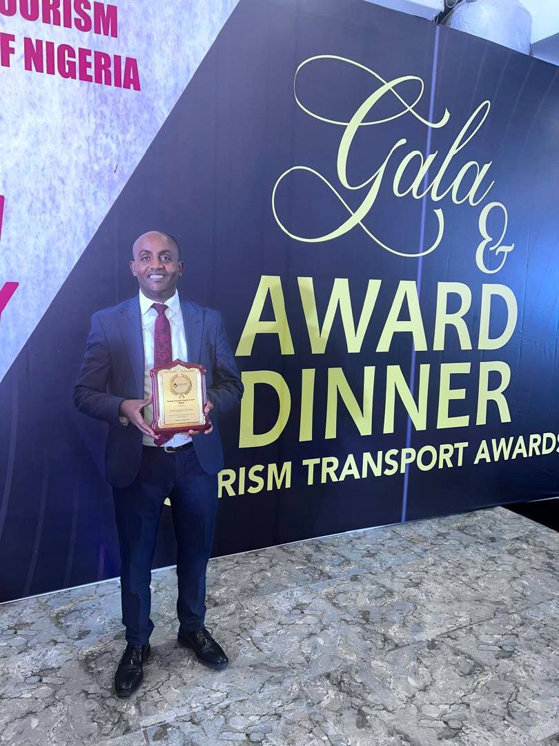 መገዲ ኣየር ኢትዮጵያ ኣብ ናይጄሪያ ኣቡጃ ኣብ ዝተኻየደ ኤክስፖ ቱሪዝምን ትራንስፖርትን ንምዕባለ ቱሪዝም ኢንዱስትሪ ናይጄሪያ ብዓውዲ ኣየር ትራንስፖርት ዘበርክቶ ዘሎ ዝለዓለ ኣስተዋፅኦ "Outstanding Onboarding Experience Achievements” ኢዩ ሽልማት ተዋሂቡዎ።