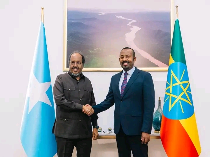 ቀዳማይ ሚኒስትር ዐቢይ ኣሕመድ(ዶ/ር) ምስ ፕሬዚዳንት ፌዴራል ሪፐብሊክ ሶማሊያ ሀሰን ሼክ መሃሙድ ዘትዮም