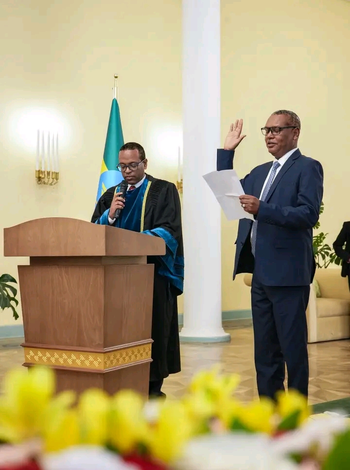 እቶም ኣምባሳደር ካብ ፕሬዚዳንት ታዬ ኣፅቀ ስላሴ ደብዳበ ሹመቶም ብምቕባል ኣብ ቅድሚ ፕሬዚዳንት ላዕለዋይ ቤት ፍርዲ ፌዴራል ቴዎድሮስ ምህረት ቀሪቦም ቃለ መሓላ ፈፂሞም።