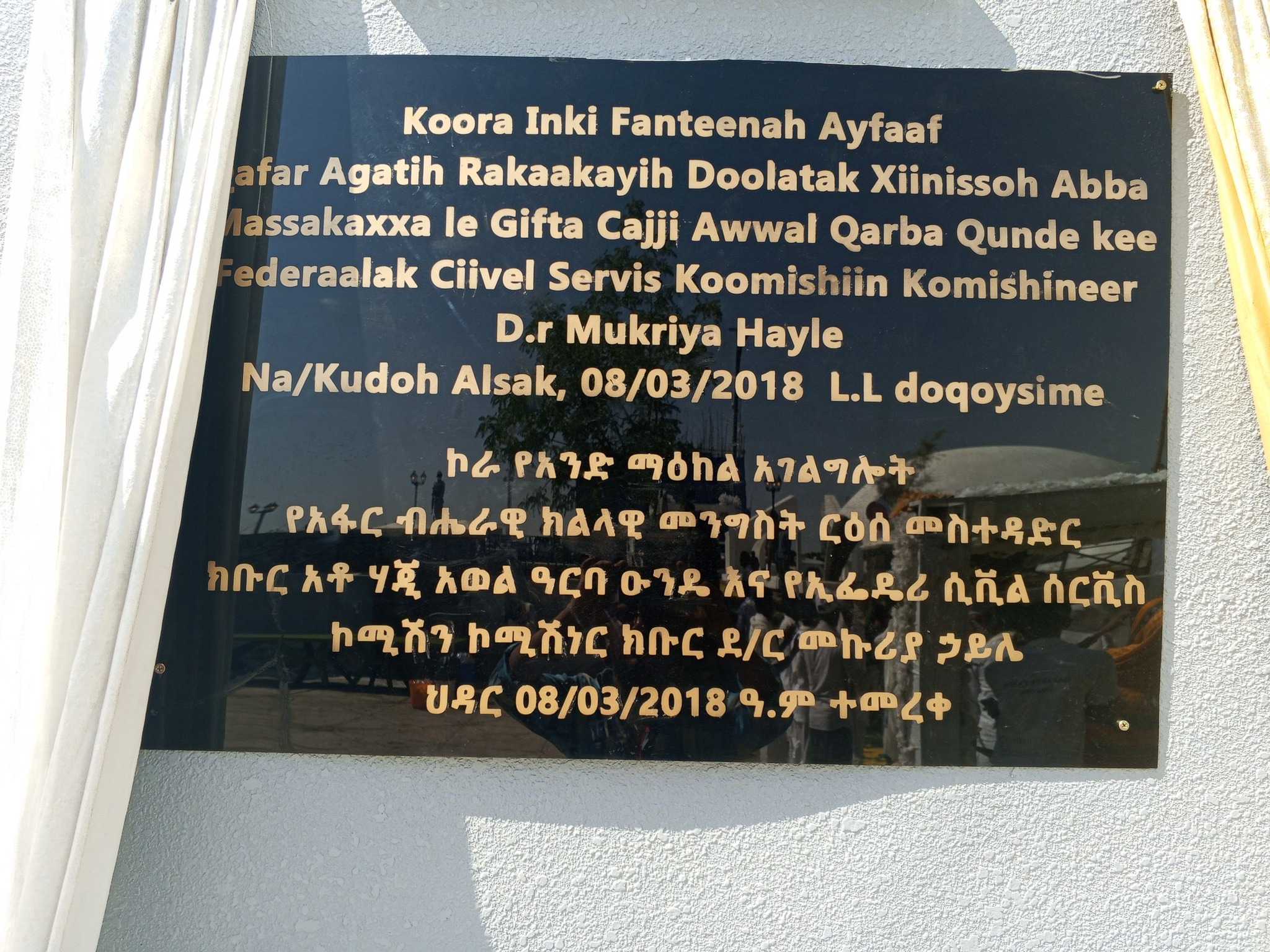 ኣገልግሎት ሓደ ማእኸል መሶብ(ኮራ) ክልል ዓፋር ስራሕ ጀሚሩ