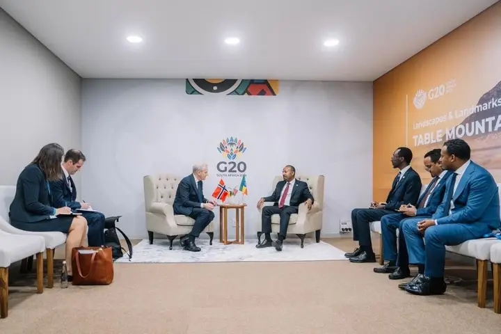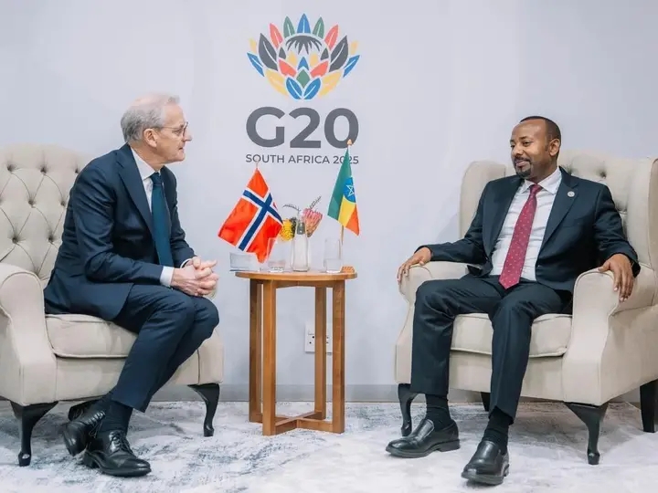 ኣዲስ ኣበባ/ሕዳር 13/2018(ኢዜኣ) ቀዳማይ ሚኒስትር ዐቢይ ኣሕመድ(ዶ/ር) ምስ ቀዳማይ ሚኒስትር ኖርዌይ ጆናስ ጋህር ስተር ዘትዮም።
