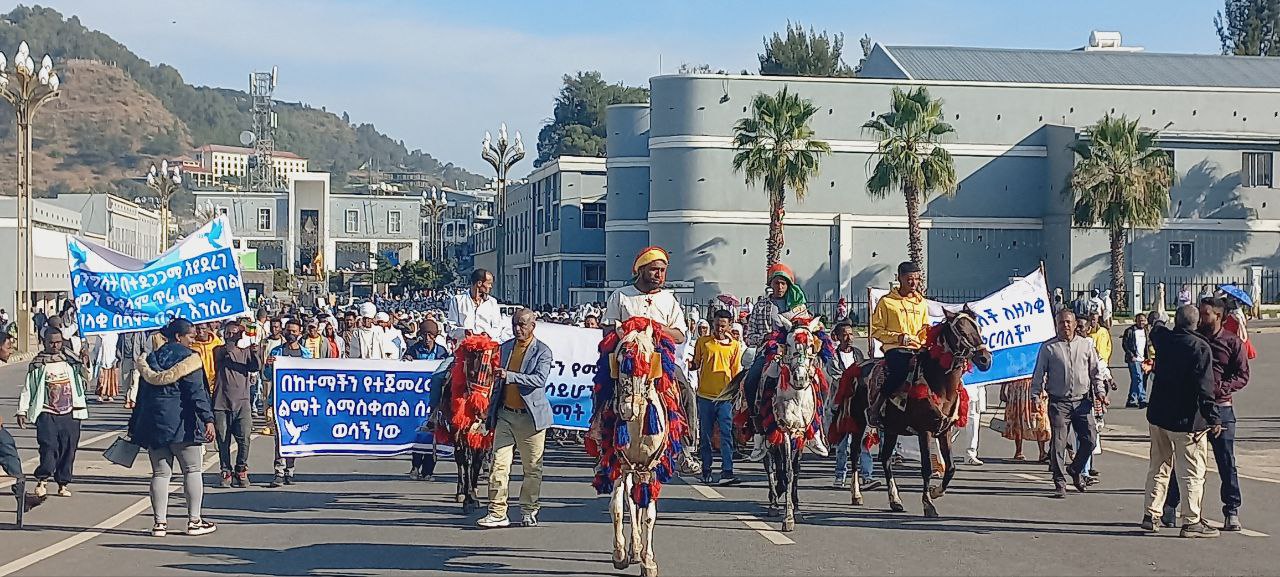 ዓብይ ፃውዒት ሰላም ዝሓዘ ህዝባዊ ሰልፊ ኣብ ከተማ ጎንደር ፒያሳ መስቀል ኣደባባይ ይካየድ ኣሎ/ብምስሊ